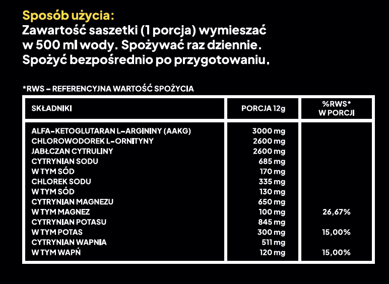 Gießen Sie 1 Beutel HydRAVE in 300-500 ml Wasser oder Saft in den ersten 1-3 Stunden der körperlichen Aktivität (Veranstaltungen). Bei längerer Aktivität über 3-4 Stunden, können Sie eine weitere Portion einnehmen. Wenn Sie länger als 45 Minuten trainieren, nehmen Sie 1 Portion HydRAVE während des Trainings ein - zusammen mit Ihrer Flüssigkeitszufuhr. Die volle Wirkung des Produkts tritt 1 Stunde nach der Einnahme einer Portion ein. Um Katererscheinungen oder geistige und körperliche Ermüdung zu beseitigen, nehmen Sie eine weitere Portion HydRAVE am Tag nach einem längeren Training ein.
