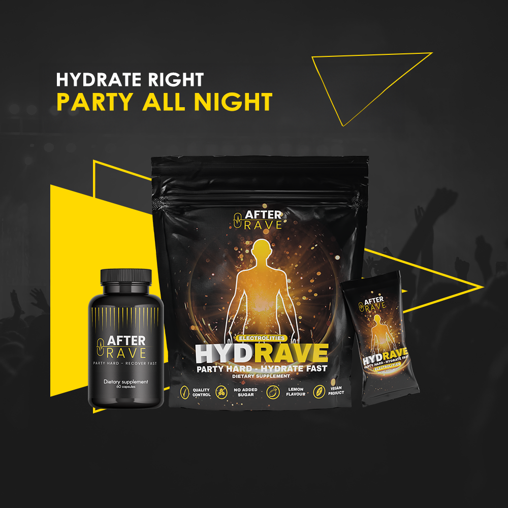 After Rave and HydRave are dietary supplements that have been created for fast and effective recovery after even the longest parties(and after parties) . With a unique combination of ingredients to support both the physical and mental aspects of health, After Rave and HydRave are ideal for anyone who wants to get back into full shape quickly.Don't wait any longer - take care of yourself and your well-being after every party. Try After Rave and HydRAVE and see how quickly you can recover!