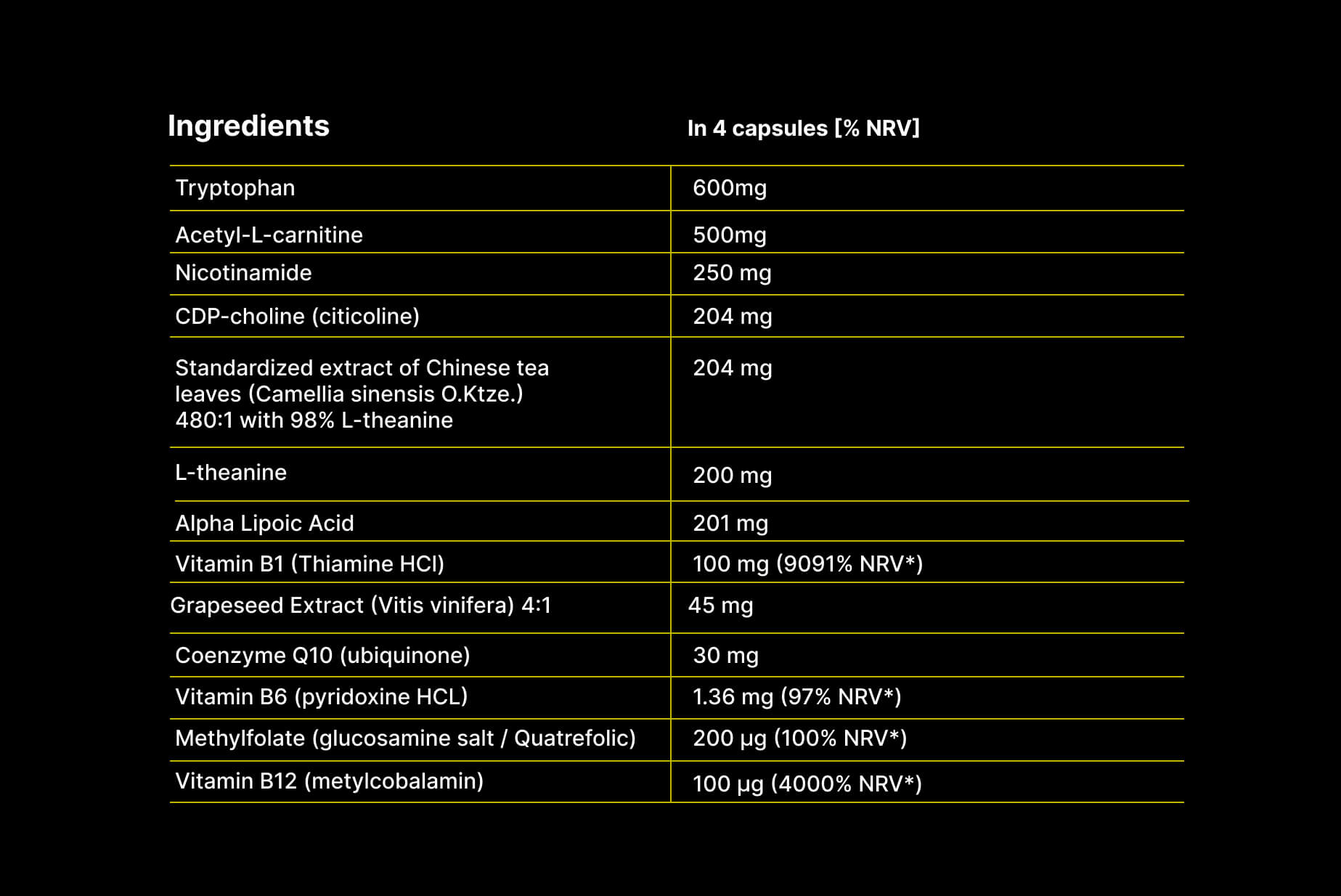 L-theanine is an amino acid of non-protein origin. It is obtained from tea leaves (Camellia sinensis) [1]. It is a compound that fulfills a number of functions for the brain - through a calming mechanism, to improving memory, ability to concentrate and many other aspects related to the proper functioning of the brain. Properties: Inhibits the excitotoxic effect of glutamate on neurons [2]. Many psychoactive substances, such as MDMA [3], increase glutamate activity to a neurotoxic extent, which translates into side effects in the neuronal area. It increases the activity of alpha waves in the brain, which are associated with relaxation [4]. It improves memory and concentration [5], thus to some extent eliminating the side effects of psychoactive substances that disturb these processes. It reduces the neurotoxic aspect of stress (including oxidative stress) [6, 7], which is endocrine-induced by psychoactive substances such as amphetamines, such as MDMA [8]. Additionally, it has a positive effect on the activity of glutathione, which counteracts the aspect of oxidative stress - harmful to cells [2]. It has a calming effect [9] on the central nervous system - without the numbing effect - thus reducing the stimulating effect of selected psychoactive substances [10, 11] and facilitating falling asleep. It reduces the harmfulness of THC in terms of cognitive functions of the brain [12], thus limiting the negative impact on parameters such as memory. It supports mental health by reducing symptoms of mental health disorders such as anxiety [13]. Anxiety is one of the common complications of regular use of psychoactive substances [14]. List of scientific sources (to find the study easily, paste it into Google):